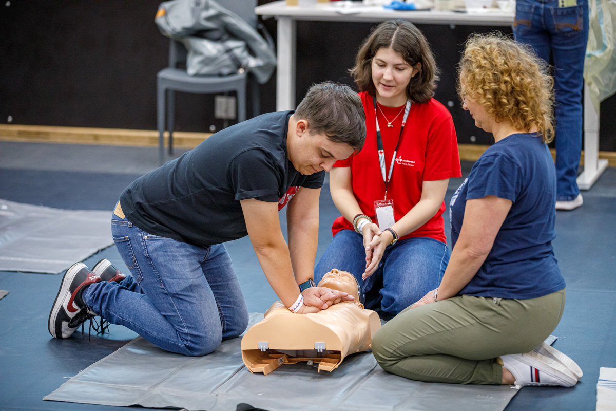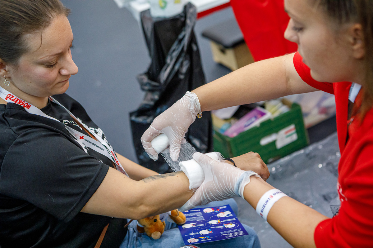 a résztvevők kipróbálhatták az újraélesztést, a sebellátás és vérzéscsillapítás módszereit, valamint a betegmozgatást és a kötözést is.