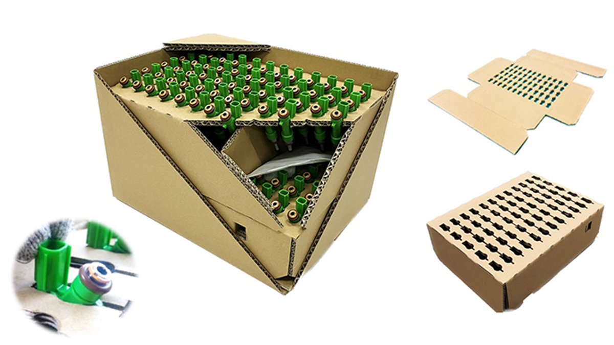 A külföldi autóipari befecskendezők korábbi csomagolása az alkatrészek vízszintes elrendezését tartalmazta, és műanyag tálcákat és párnázó anyagokat használt, amelyek